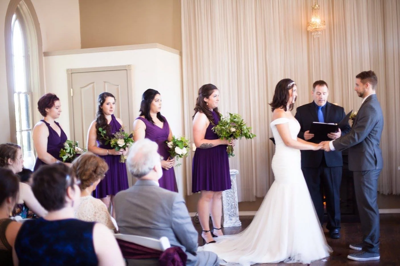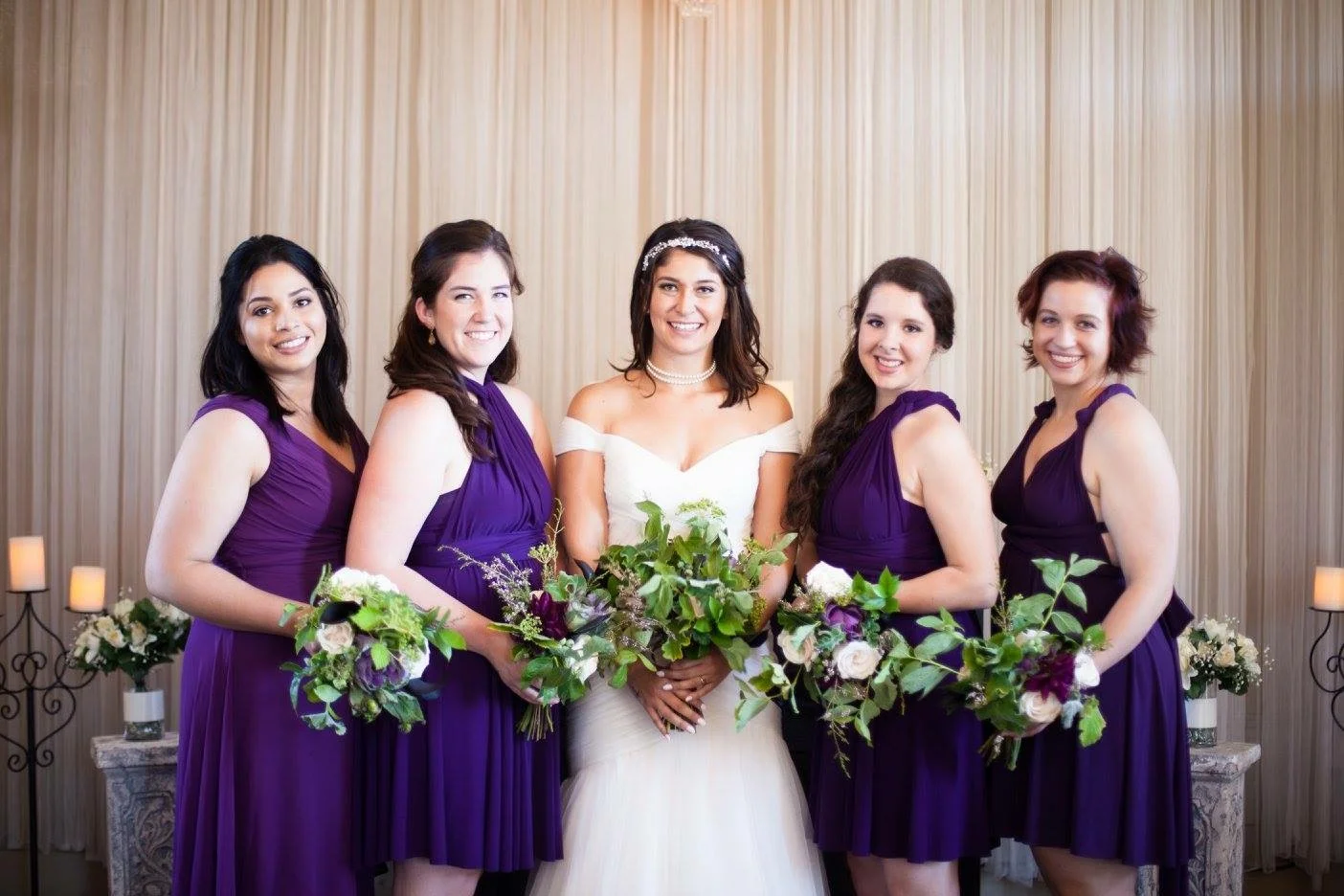 When Chelsy and Darien announced their intimate wedding ceremony and reception for a Tuesday in June, their friend Jade stepped in to help organize the bridal party's flowers and I was happy to help. Instruction was minimal, but Jade knew Chelsy liked eggplant purple so I ran with that and created some simple bouquets and boutonnieres for the whole group.
